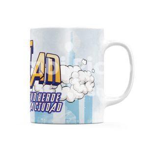 Taza de porcelana blanca que puede meterse en el microondas y el lavavajillas.